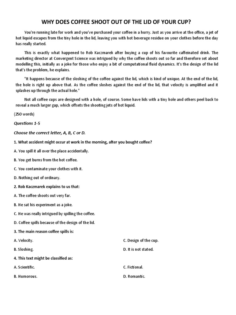 You're running late for work and you've purchased your coffee in a hurry. You’re running late for work and you’ve purchased your coffee in a hurry. Liveworksheets transforms your traditional printable worksheets into self. You can do the exercises online or download the worksheet. the coffee shoots out of the lid because of sloshing against the lid which amplifies the velocity of the coffee up through the small hole. why does coffee shoot out of the lid of your cup? scientists have worked out why coffee spits out of the lid of a disposable cup. Why does it happen so often, asks. why does coffee shoot out of the lid of your cup?